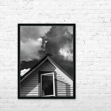 Black Bird on roof Picture Frame Printing