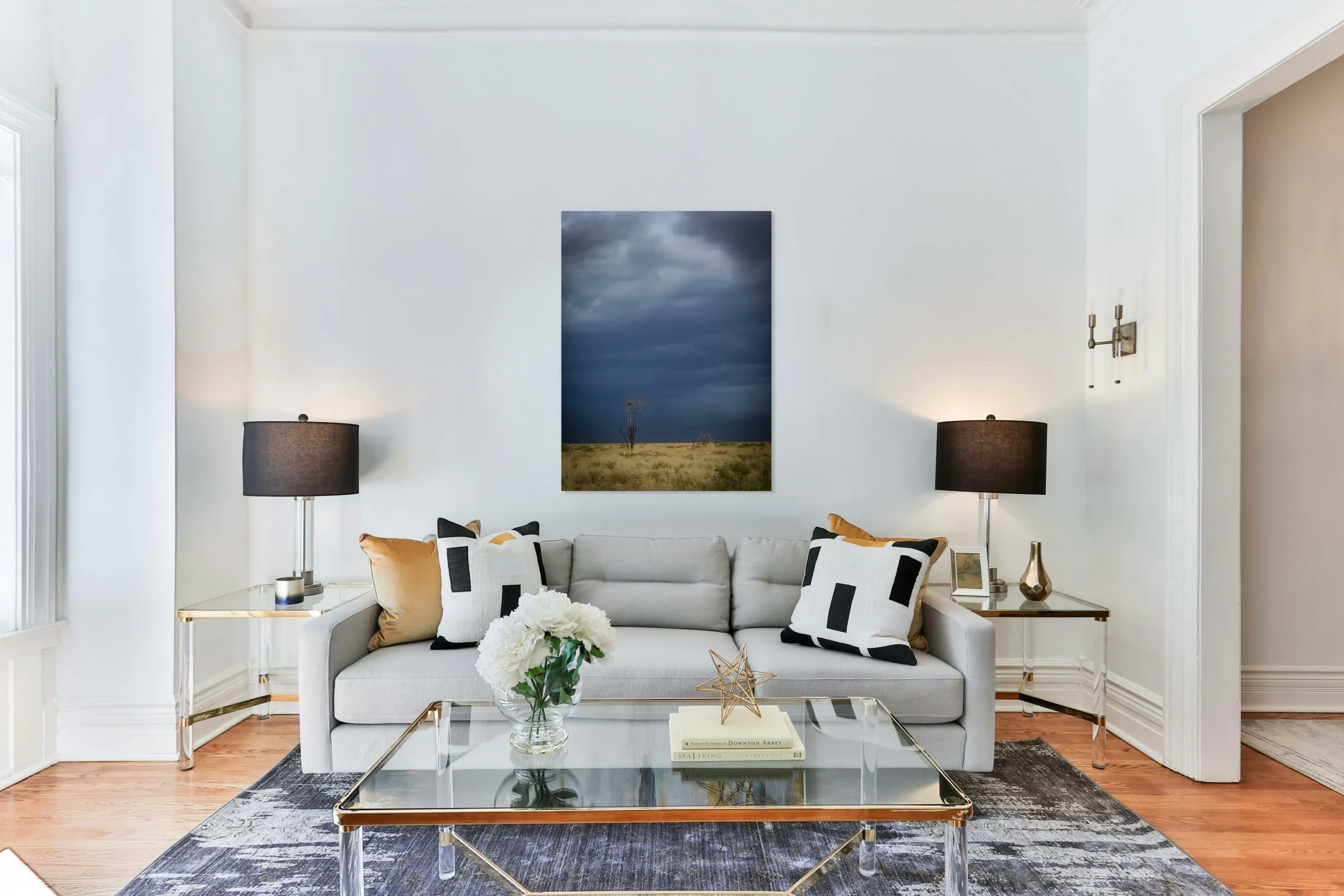 Printed to the edge - Ready to hang - provided with 4 premium polished aluminum stand off ( wall screws and mounting hardware provided )